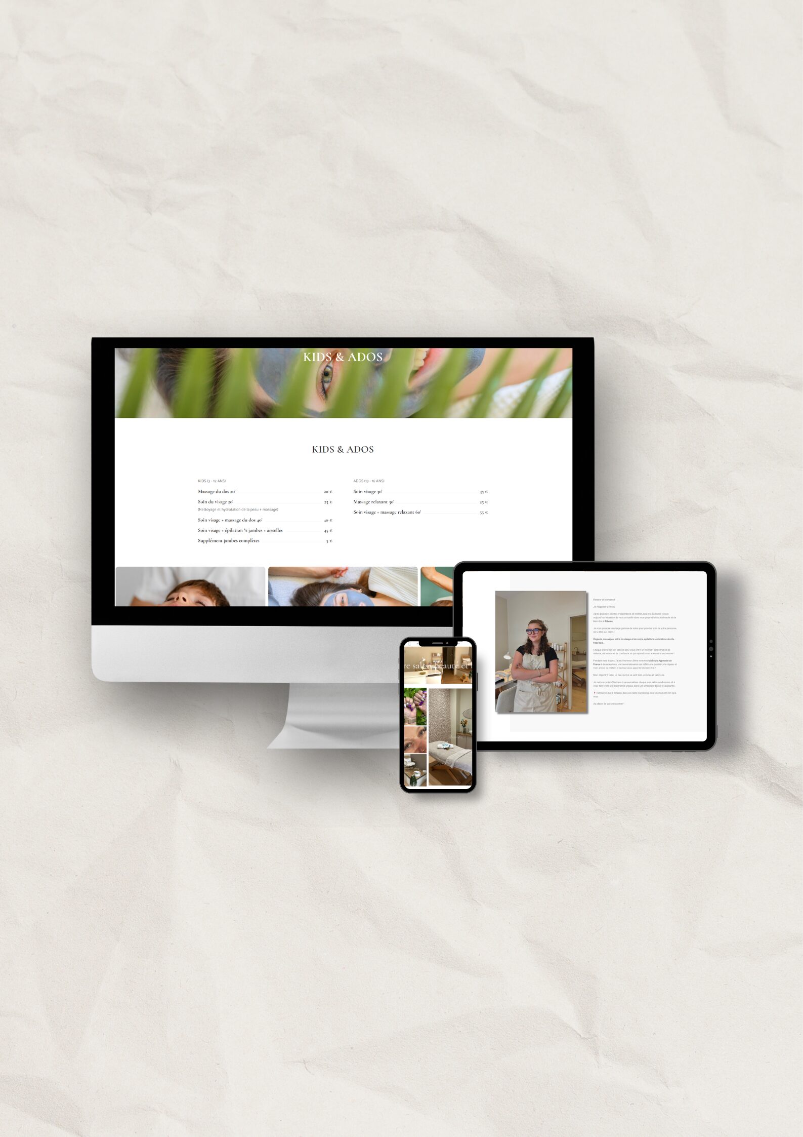 5 pages - Accueil / À Propos / Services / Réalisations ou Galerie photos / Contact