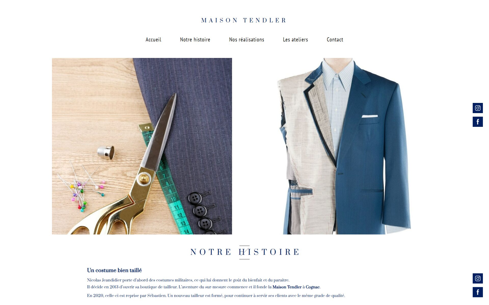 Création d'un site vitrine pour la Maison TENDLER, offrant des prestations de tailleur, retouches et couture à Cognac, Charente (16).