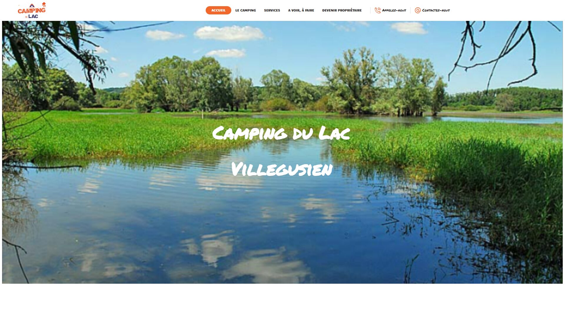 Création d'un site vitrine pour le Camping du Lac au décor verdoyant près du lac de Villegusien (services de location, aires de jeux, laverie, restauration), au cœur de la campagne en Haute-Marne (52).